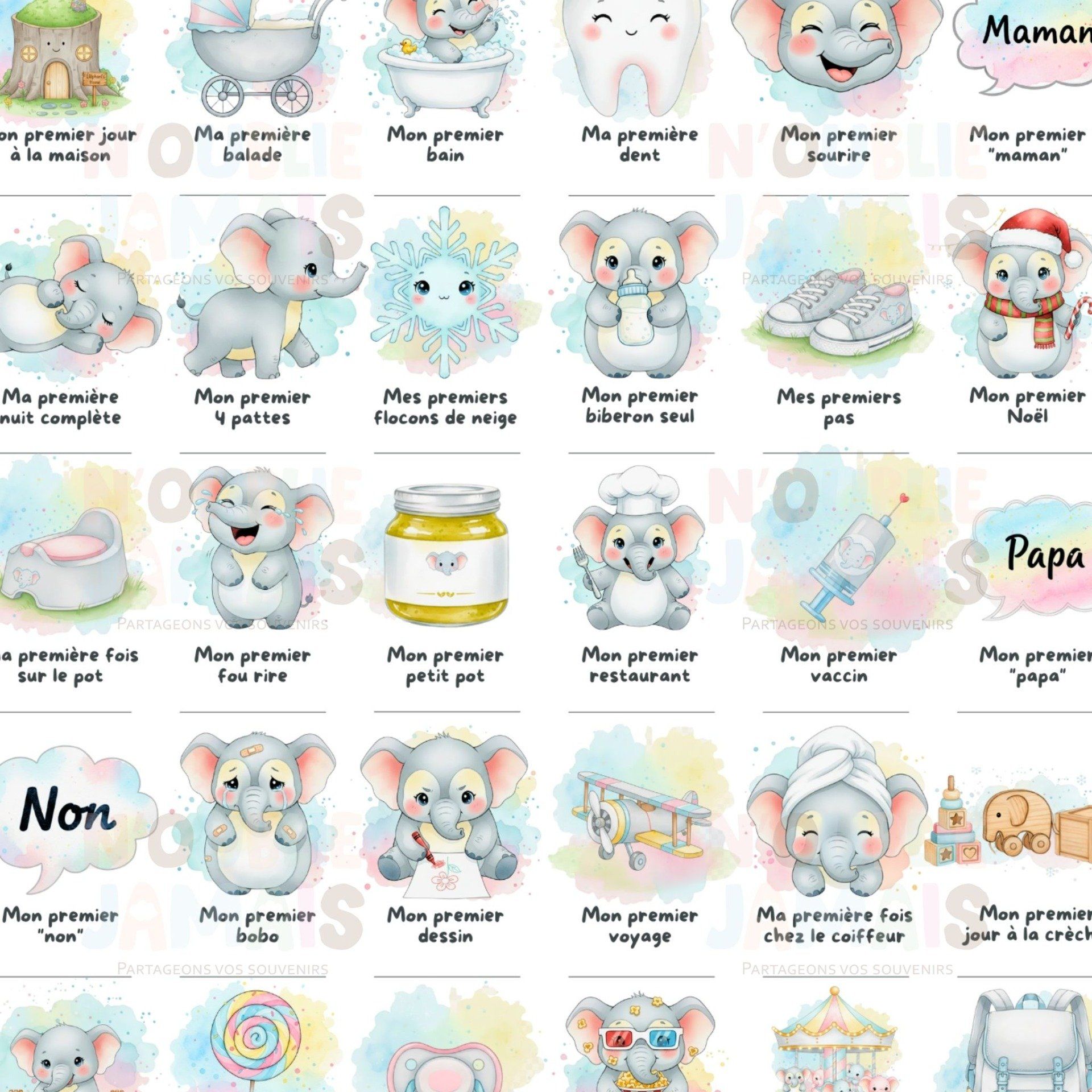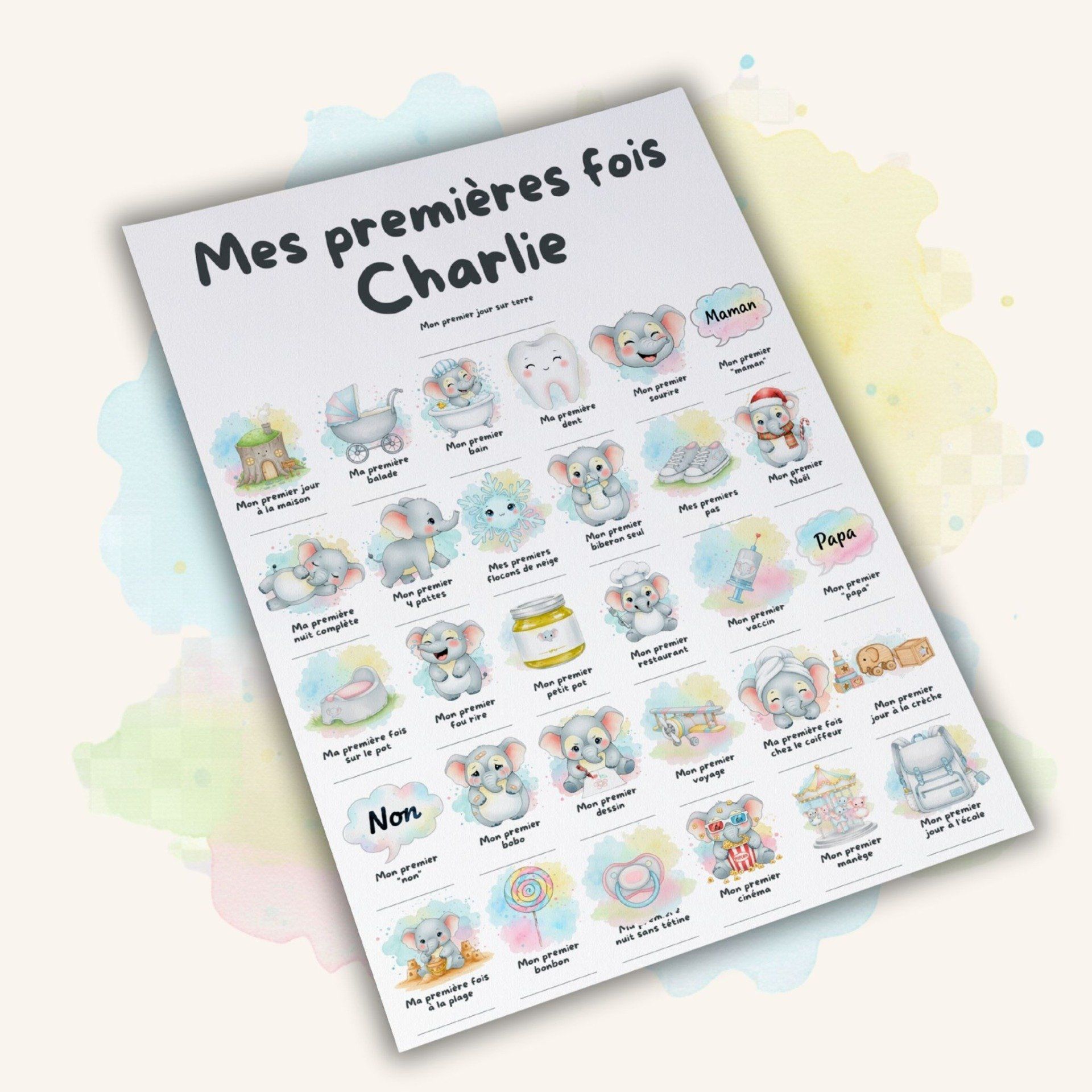 Immortalisez chaque étape de bébé avec notre affiche A3 "Mes Premières Fois" thème éléphant. Création française, imaginée et imprimée à Aix-en-Provence, à personnaliser avec son prénom. Le souvenir parfait à compléter au stylo ou avec un tampon dateur.