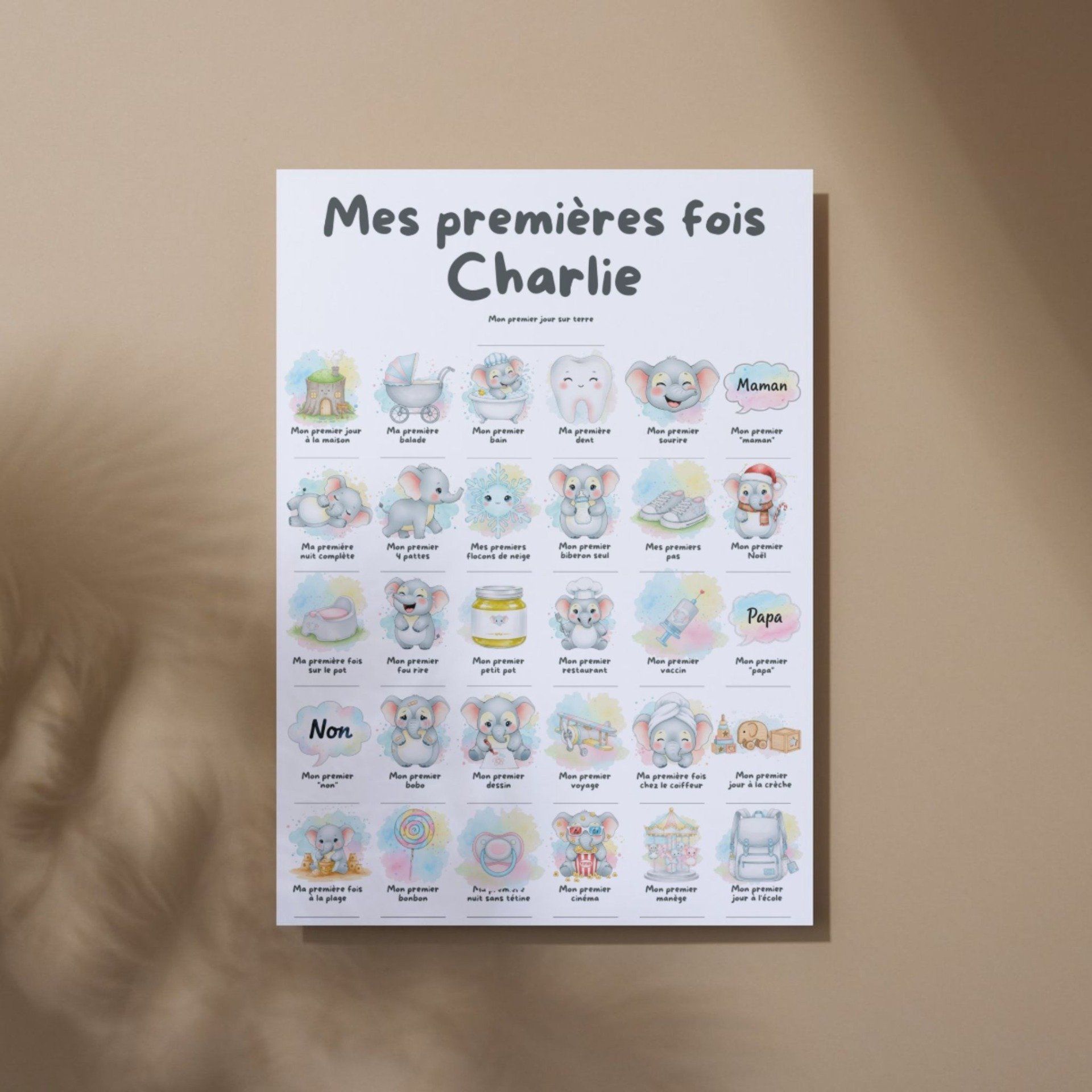Affiche mes premières fois personnalisable Bébé Éléphant