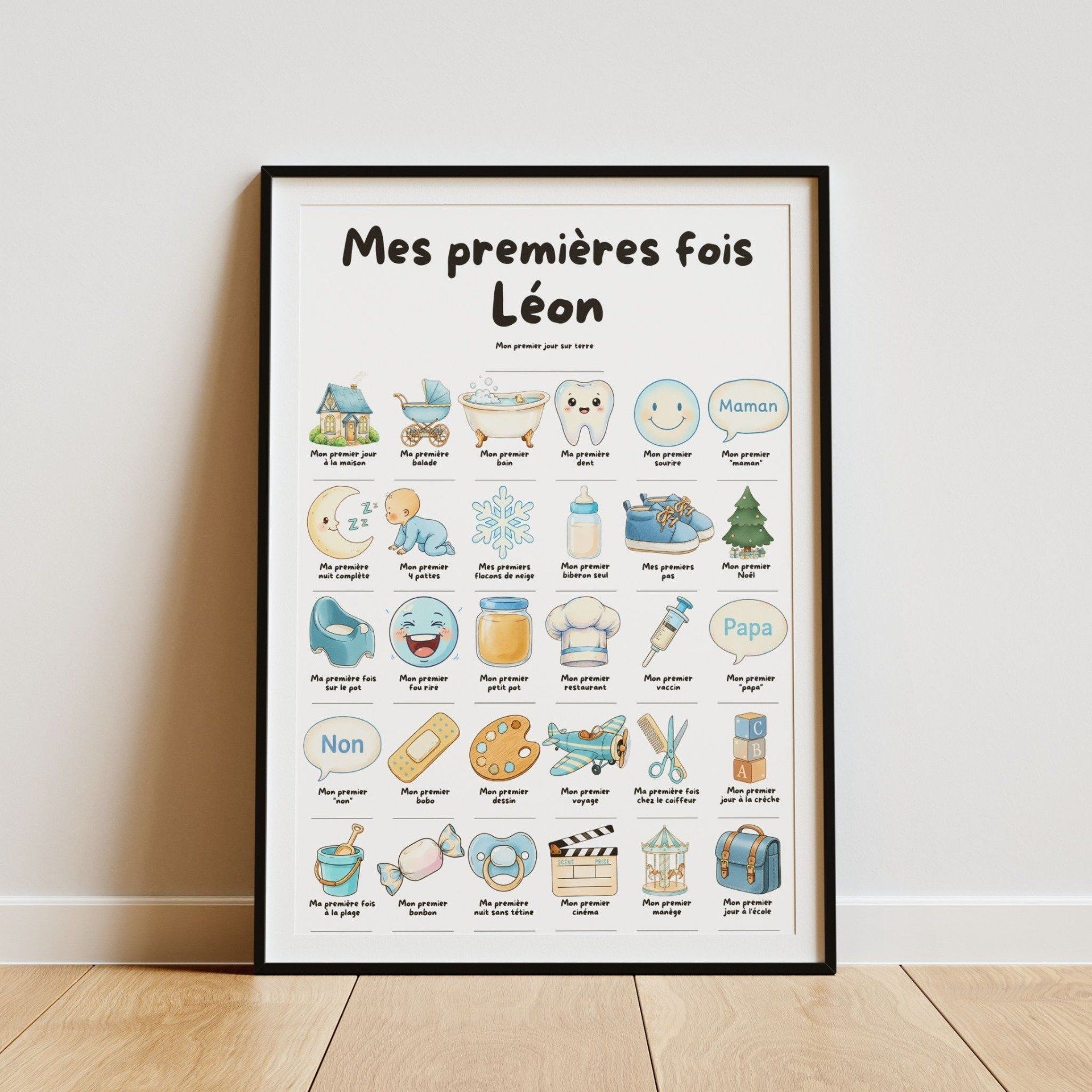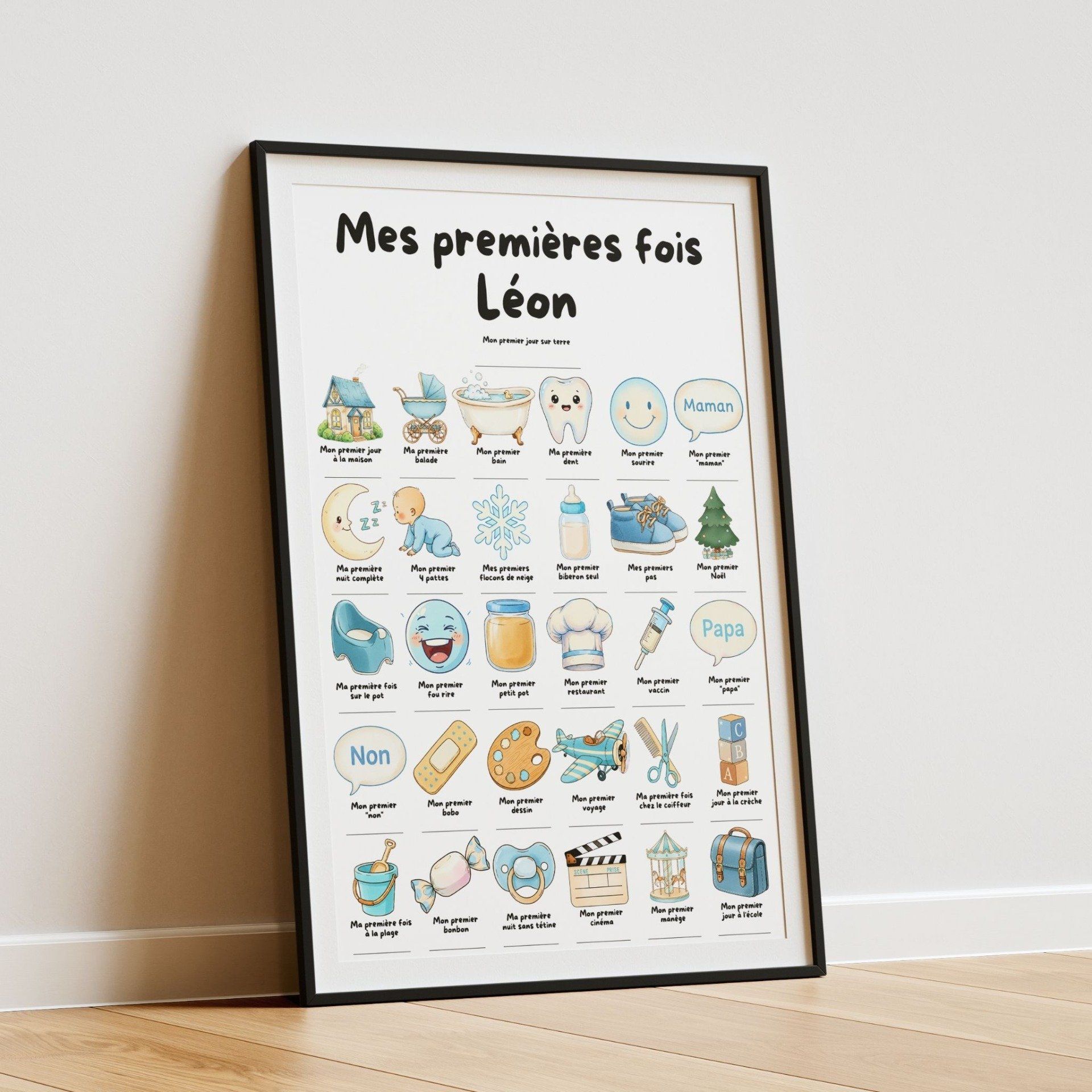 Immortalisez chaque étape de bébé avec notre affiche A3 "Mes Premières Fois" thème bleu. Création française, imaginée et imprimée à Aix-en-Provence, à personnaliser avec son prénom. Le souvenir parfait à compléter au stylo ou avec un tampon dateur.
