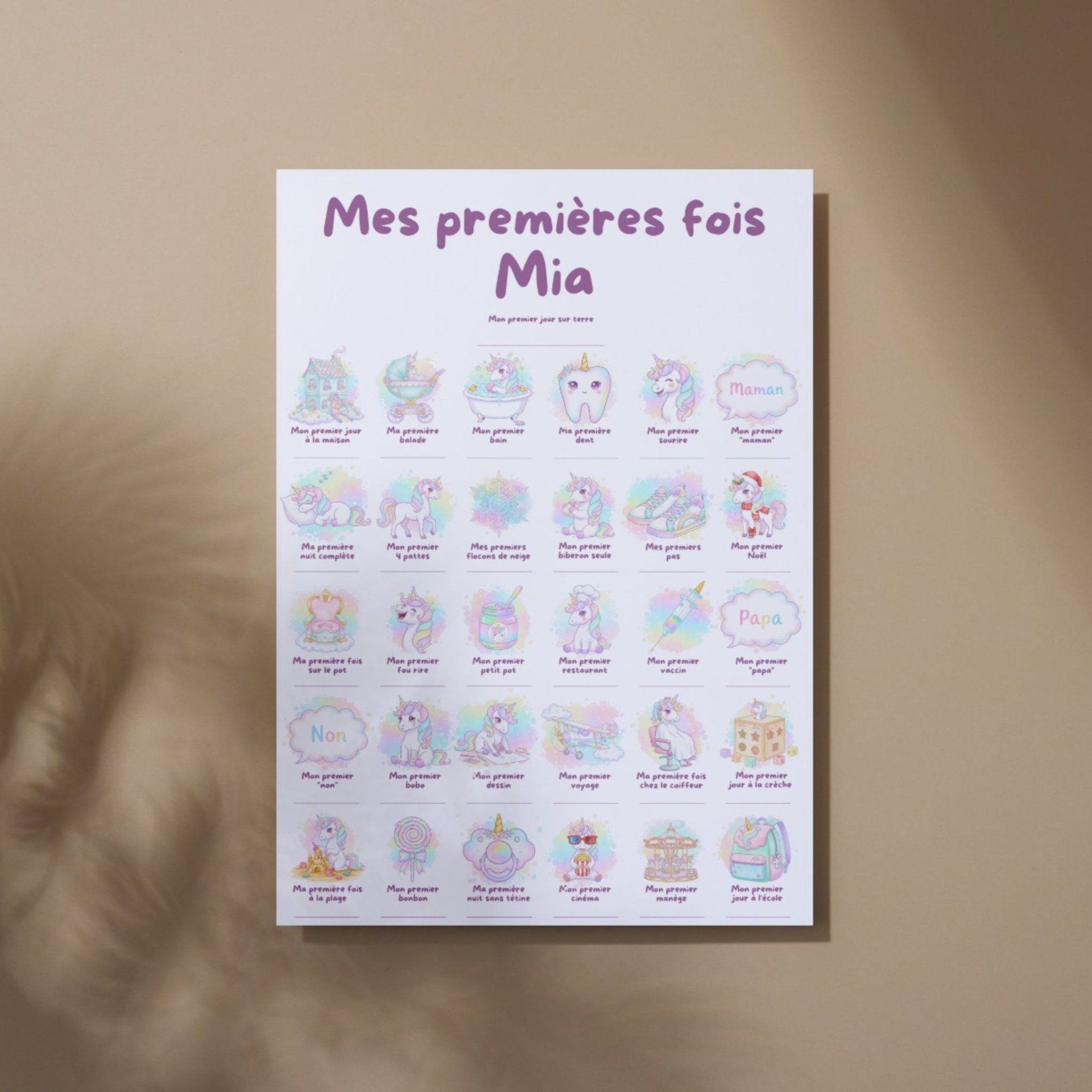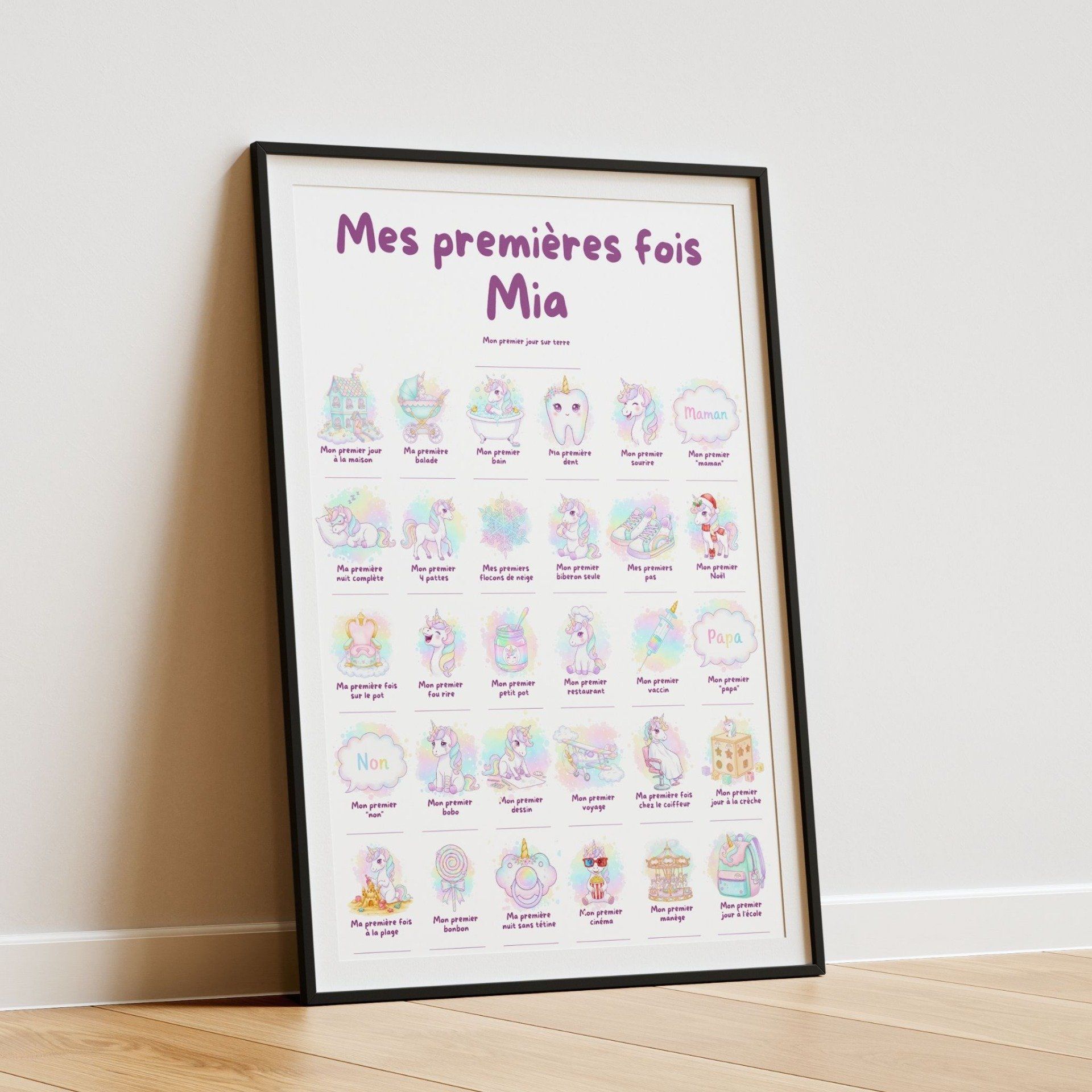 Immortalisez chaque étape de bébé avec notre affiche A3 "Mes Premières Fois" thème licorne. Création française, imaginée et imprimée à Aix-en-Provence, à personnaliser avec son prénom. Le souvenir parfait à compléter au stylo ou avec un tampon dateur.