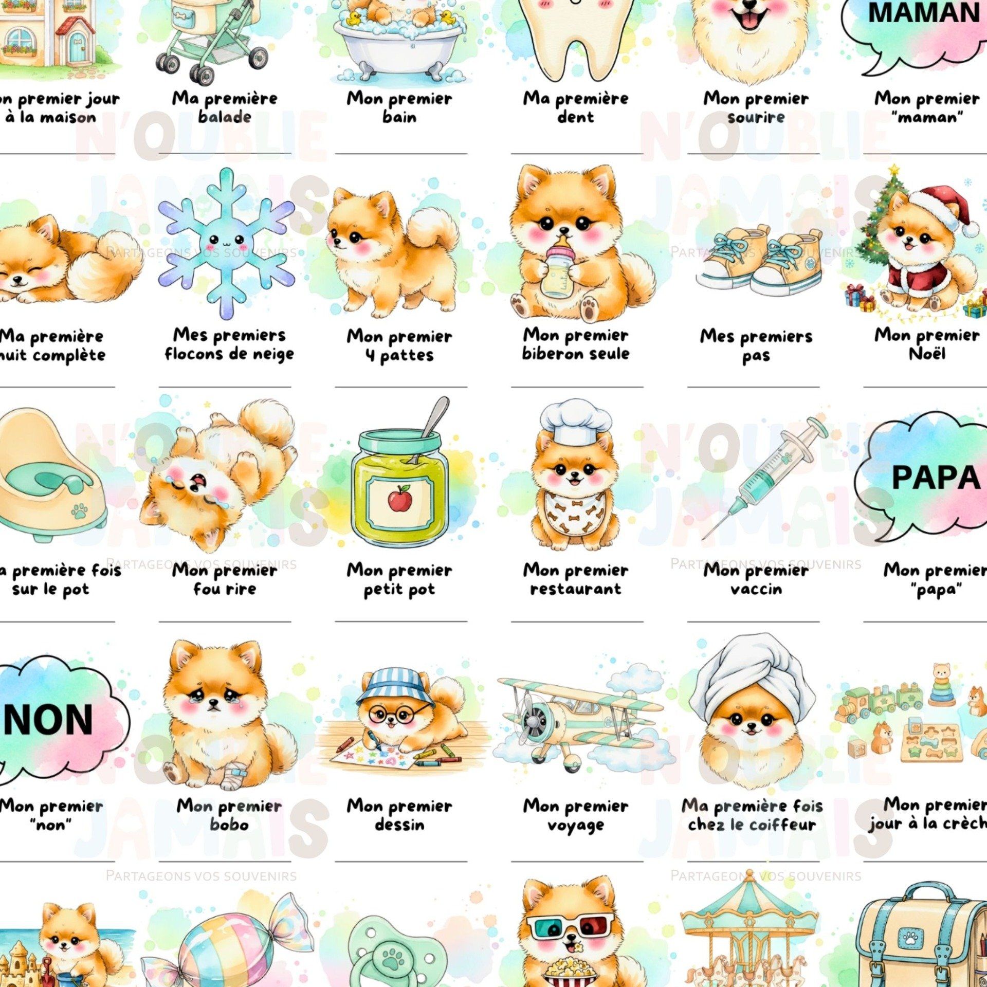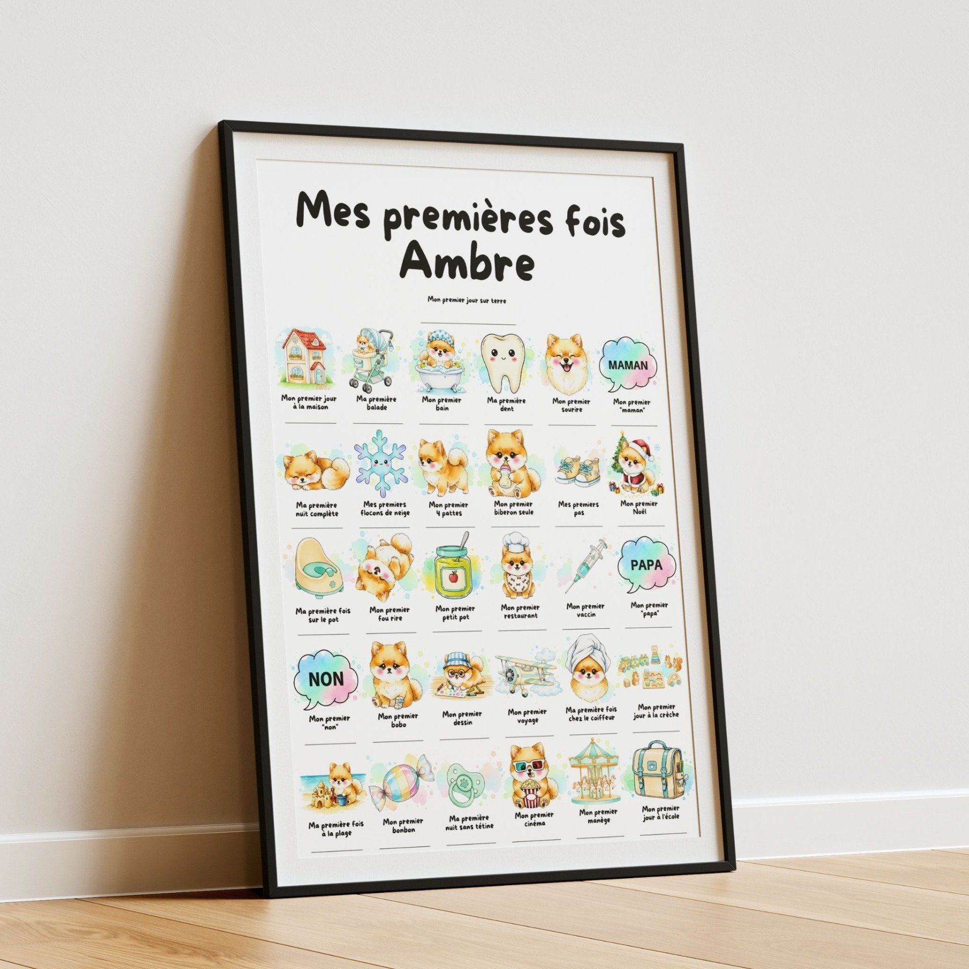 Immortalisez chaque étape de bébé avec notre affiche A3 "Mes Premières Fois" thème spitz. Création française, imaginée et imprimée à Aix-en-Provence, à personnaliser avec son prénom. Le souvenir parfait à compléter au stylo ou avec un tampon dateur.