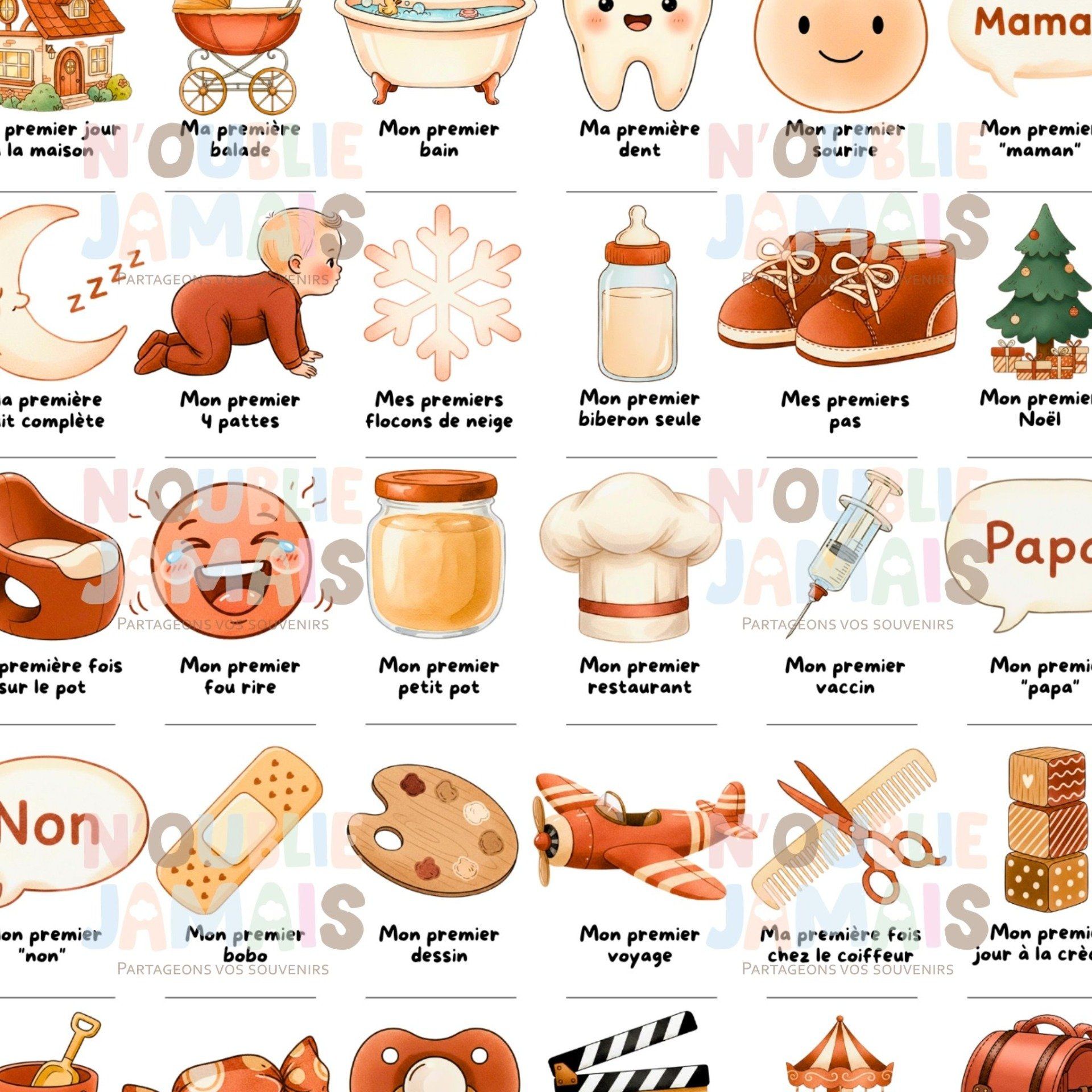 Immortalisez chaque étape de bébé avec notre affiche A3 "Mes Premières Fois" thème terracotta. Création française, imaginée et imprimée à Aix-en-Provence, à personnaliser avec son prénom. Le souvenir parfait à compléter au stylo ou avec un tampon dateur.